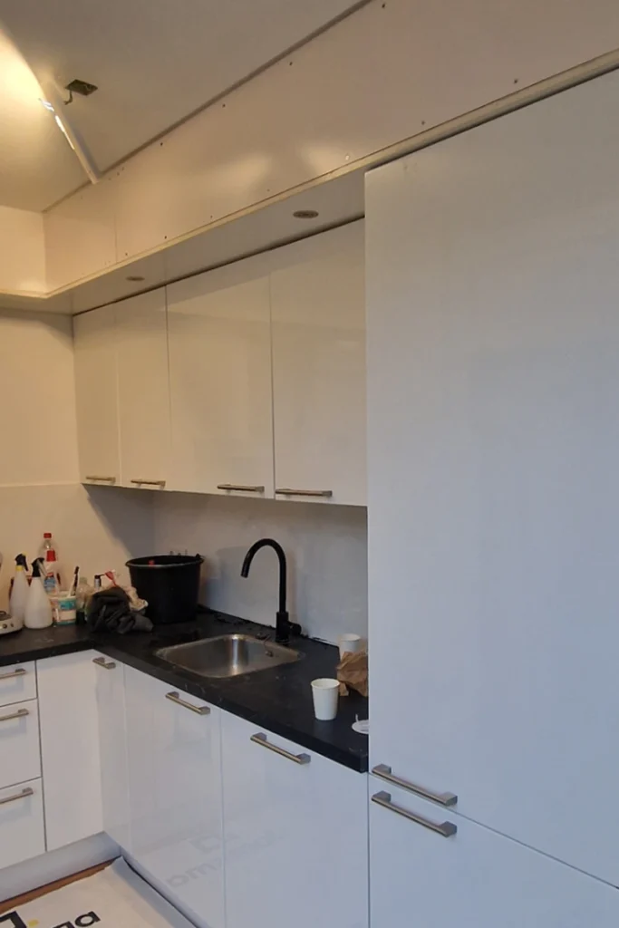 Als er een keuze is gemaakt komen wij de doos weer ophalen en alle losse kastdeurtjes worden dan gedemonteerd om vakkundig gewrapped te worden in onze werkplaats mits er vaste delen zijn komen wij die op locatie plakken gelijktijdig met de montage van de kastdeurtjes.